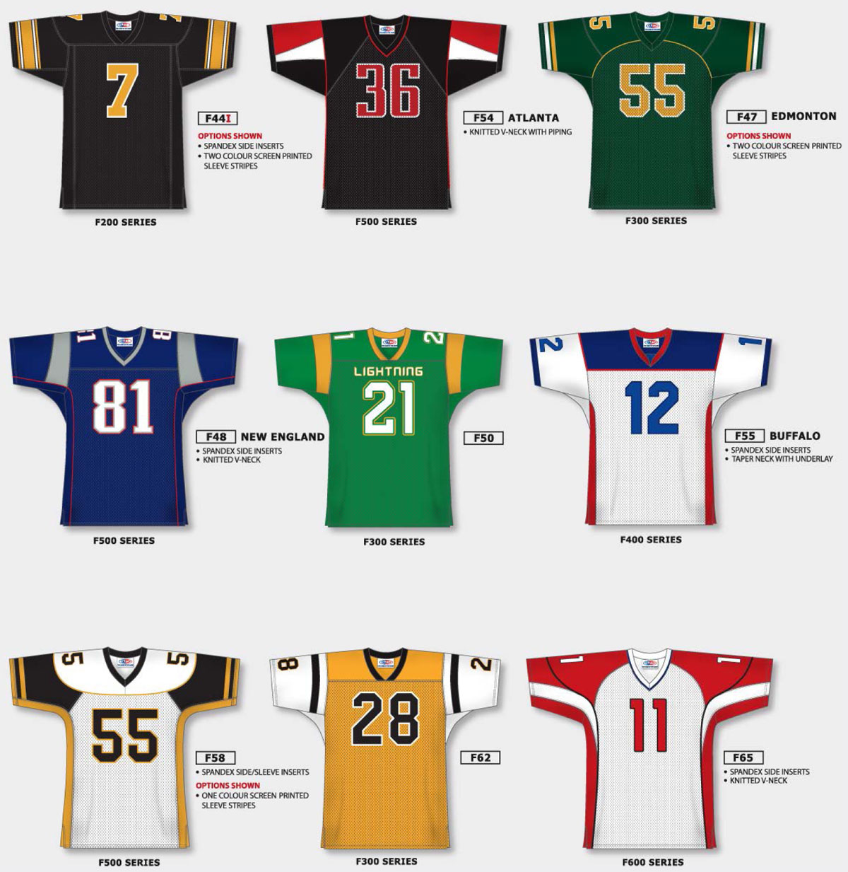 Custom Football Jerseys - All prices listed are in Canadian dollars for sizes Adult Small to 2XL and do not include cresting or shipping unless specified.